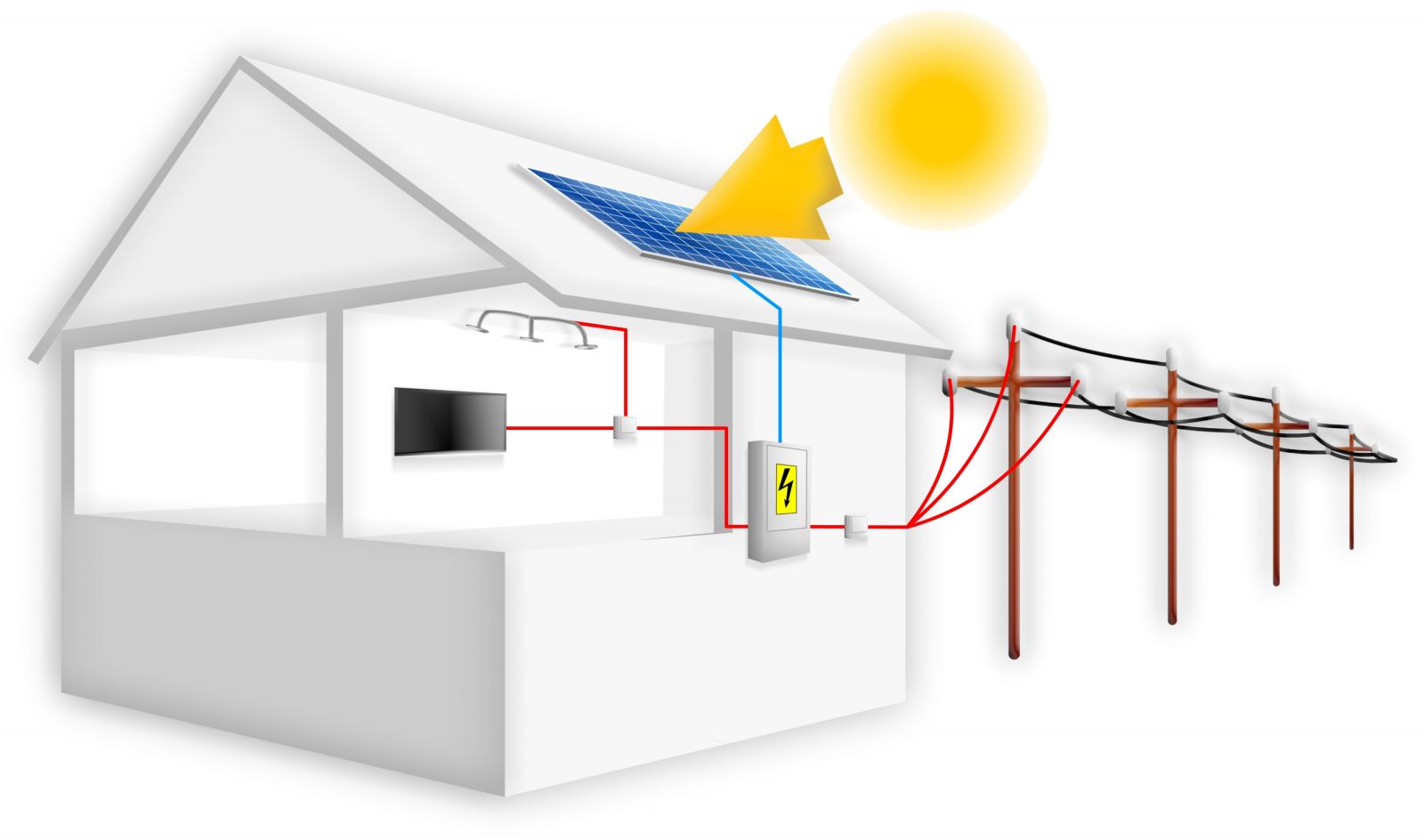 Le système solaire connecté au réseau est la solution la plus installée au Maroc. Le système contient des panneaux solaires photovoltaïques et un onduleur. Un système de 5kW coute entre MAD 65 000 et MAD 90 000 et est typiquement suffisant pour alimenter une maison Marocaine. Le système est conçu pour produire l’énergie suffisante pour le besoin énergétique du foyer. Lorsque la production surpasse la consommation le système réduit automatiquement la production tant que l’injection au réseau n’est pas encore implémentée sur le terrain. Le système d’autoconsommation se rembourse en approximativement 7ans. Des panneaux solaires de qualité ont une durée de vie de 25ans.